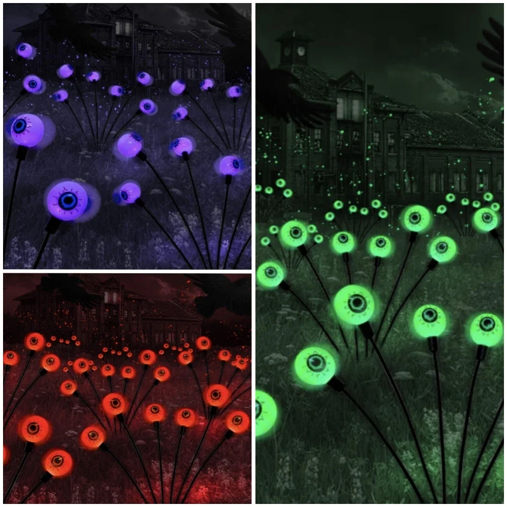 Create a Spooky Atmosphere: These eye-catching solar-powered lights feature bright green LED eyeballs that sway like fireflies, perfect for adding a spooky touch to your Halloween decorations.